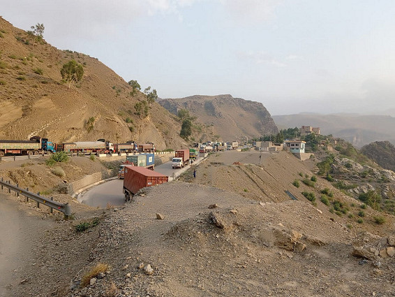 ランドセルはパキスタン軍が管理するナショナル・ロジスティクス公社(NLC:National Logistics Corporation)の監視の下で、カラチからジャララバードまでトレーラーで運ばれました。写真は、パキスタンとアフガニスタンの国境にあるトルクハム税関の様子です。