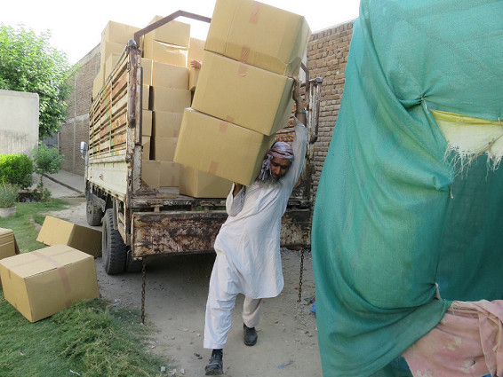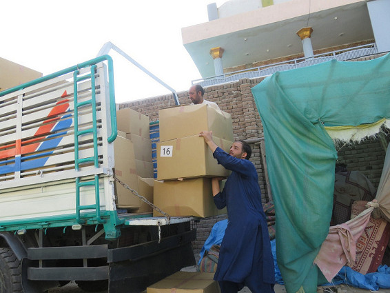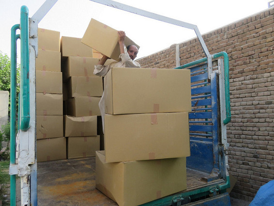 アフガン医療連合センターの倉庫へのランドセル搬入作業は、7月10日午後9時20分に無事に終わりました。アフガニスタンの学校の新学期は9月から始まっており、10月19日からナンガハール州ゴシタ郡(Goshta District)の学童にランドセルと学用品の配付を開始しています。