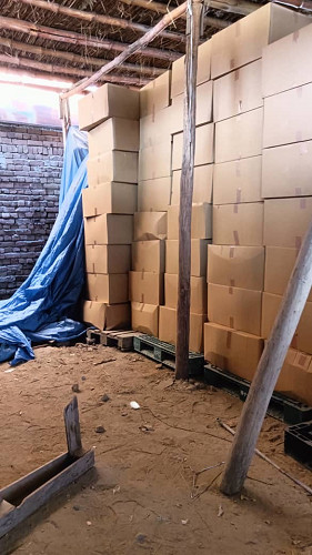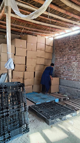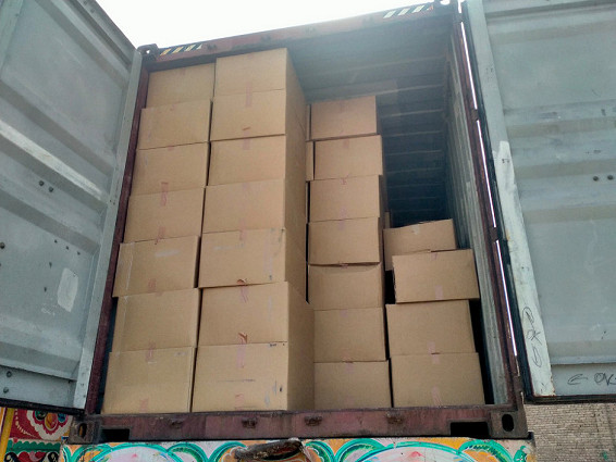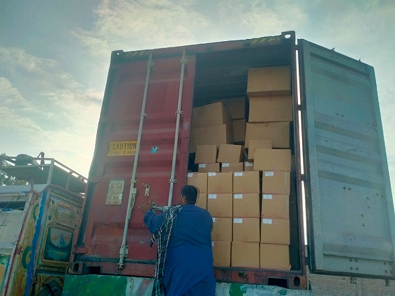横浜港出航から45日間の航海と内陸輸送で、ランドセルはアフガン医療連合センターの倉庫に届きました。