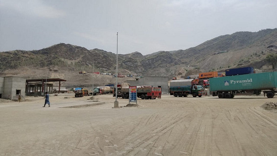 ランドセルはパキスタン軍が管理するナショナル・ロジスティクス公社(NLC:National Logistics Corporation)の監視の下で、カラチからジャララバードまでトレーラーで運ばれました。写真は、パキスタンとアフガニスタンの国境にあるトルクハム税関の様子です。