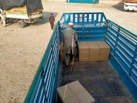 ランドセルはカラチから1800キロ以上の内陸輸送で、アフガニスタンのナンガハール州の州都ジャララバードまで無事に運ばれました。アフガン医療連合センターの現地事務所はジャララバードにあります。ランドセルは途中、パキスタンの大河であるインダス川沿いを北に向かって移動しました。